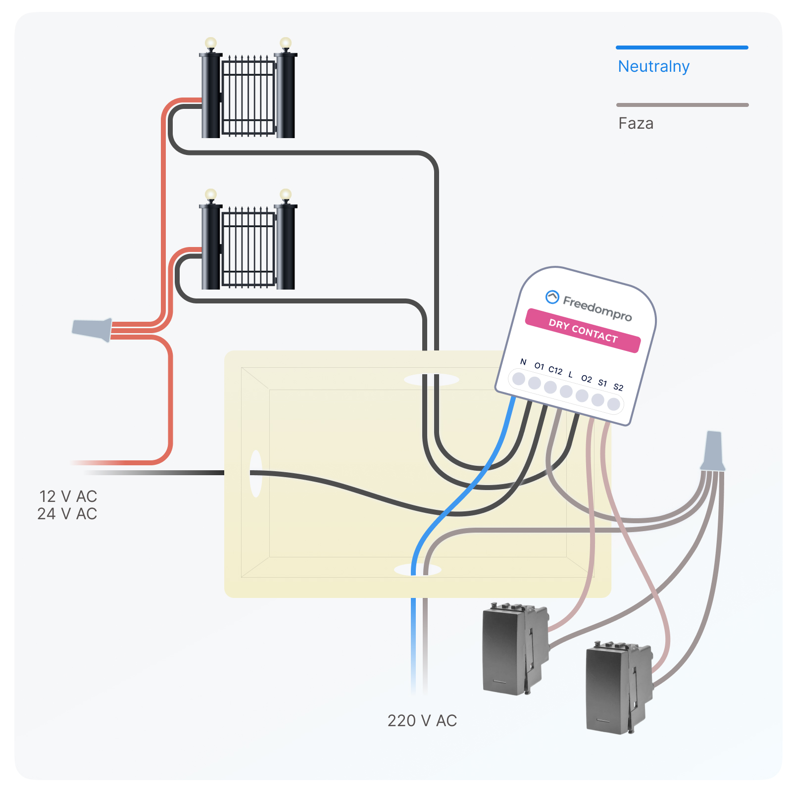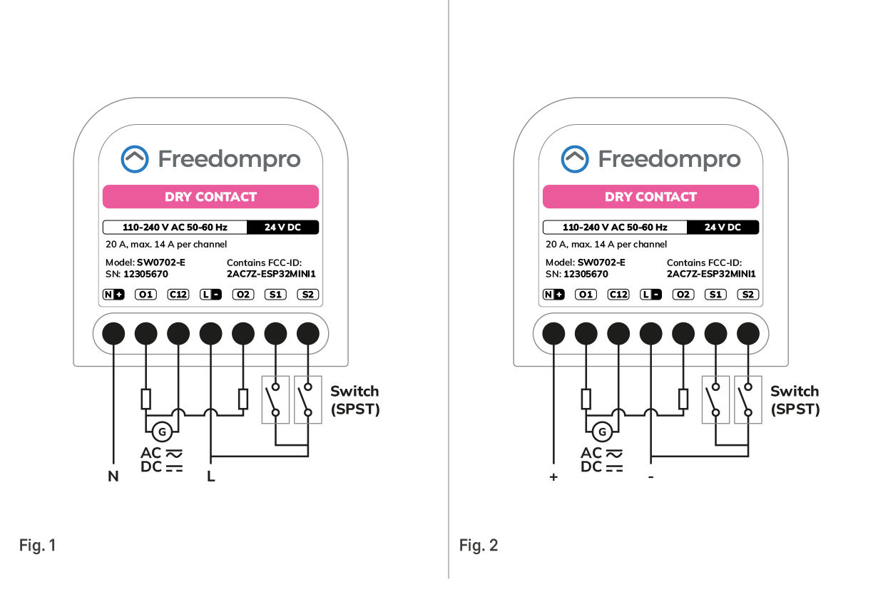 El SW0702‑E es un módulo WiFi ultracompacto diseñado para controlar de forma inteligente sistemas de 2 contactos limpios, como portones, garajes, sistemas de alarma, bombas o riego, mediante una app, voz o botones físicos. Se instala fácilmente en la caja de empotrar, sin modificar el sistema eléctrico.