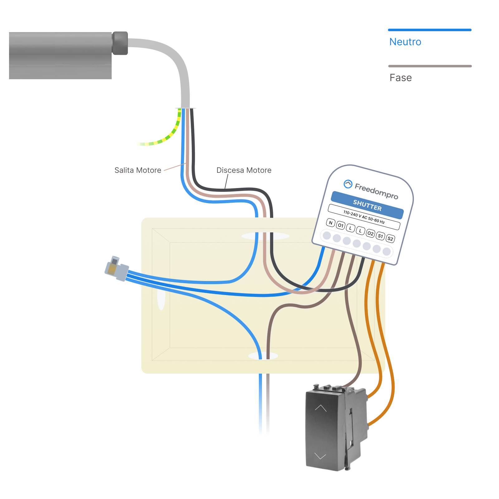 WC0601-E è il modulo WiFi ultra compatto per controllare 1 tapparella elettrica o motore avvolgibile con app, voce o comandi fisici. Si installa direttamente in scatola da incasso (502/503) o nel cassonetto della tapparella, senza modifiche invasive.